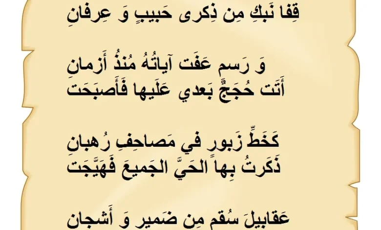 المعلقات قصائد طوال أجمعت البيئة الأدبية العربية في عصرها العصر الجاهلي على جودتها وتقدمها على ما سواها من القصائد وكذلك…