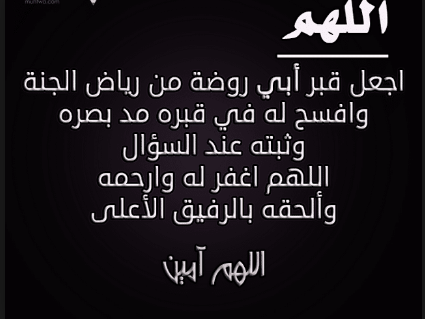 - اللهم انقله من ضيق اللحود ومن مراتع الدود الى جناتك جنات الخلود لا اله الا انت يا حنان يا منان يا بديع السموات والارض تغمد أبي برحمتك يا ارحم الراحمين.