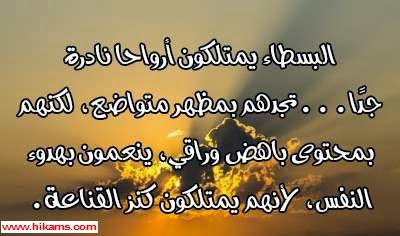 • البسطاء يمتلكون أرواحاً نادرة جداً، تجدهم بمظهر متواضح لكنهم بمحتوي باهض وراقي، ينعمون بهدوء النفس لا نهم يمتلكون كنز القناعة .