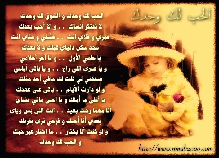 لو عاد عمرى من جديد لعدت اسلمة اليك ولو عاد قلبى من جديد لن ينبض الا بين يديك ولو كان حبك رمزا للخلود لكنت حبيبى شهيد عينيك